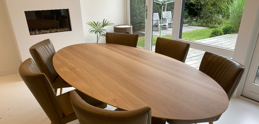 Tulp tafels voorzien van bladen in Deens ovaal.